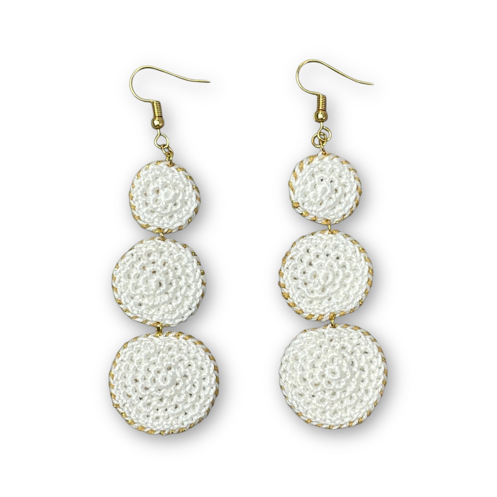 Elevate your accessory collection with the Aurora Crochet Earrings, a timeless design that embodies grace, craftsmanship, and versatility. Handmade with precision, these triple-circle earrings feature delicate white crochet work framed by elegant gold accents. Lightweight and eye-catching, they’re perfect for all-day wear—effortlessly transitioning from casual outings to formal events.