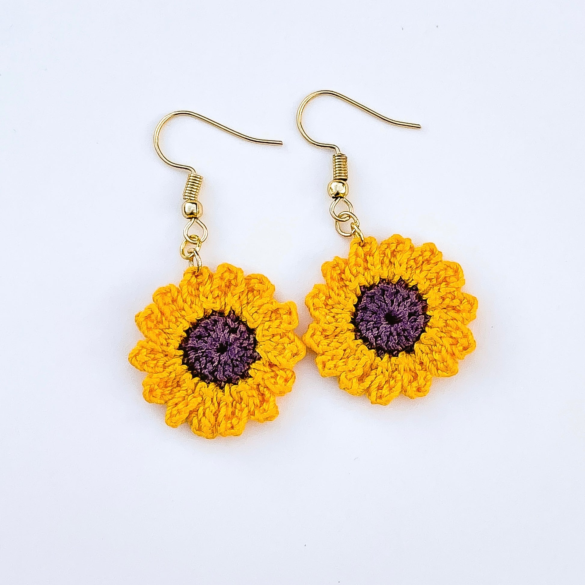Sunny and bright, these Sunflower Dangle Earrings will always put a smile on your face.