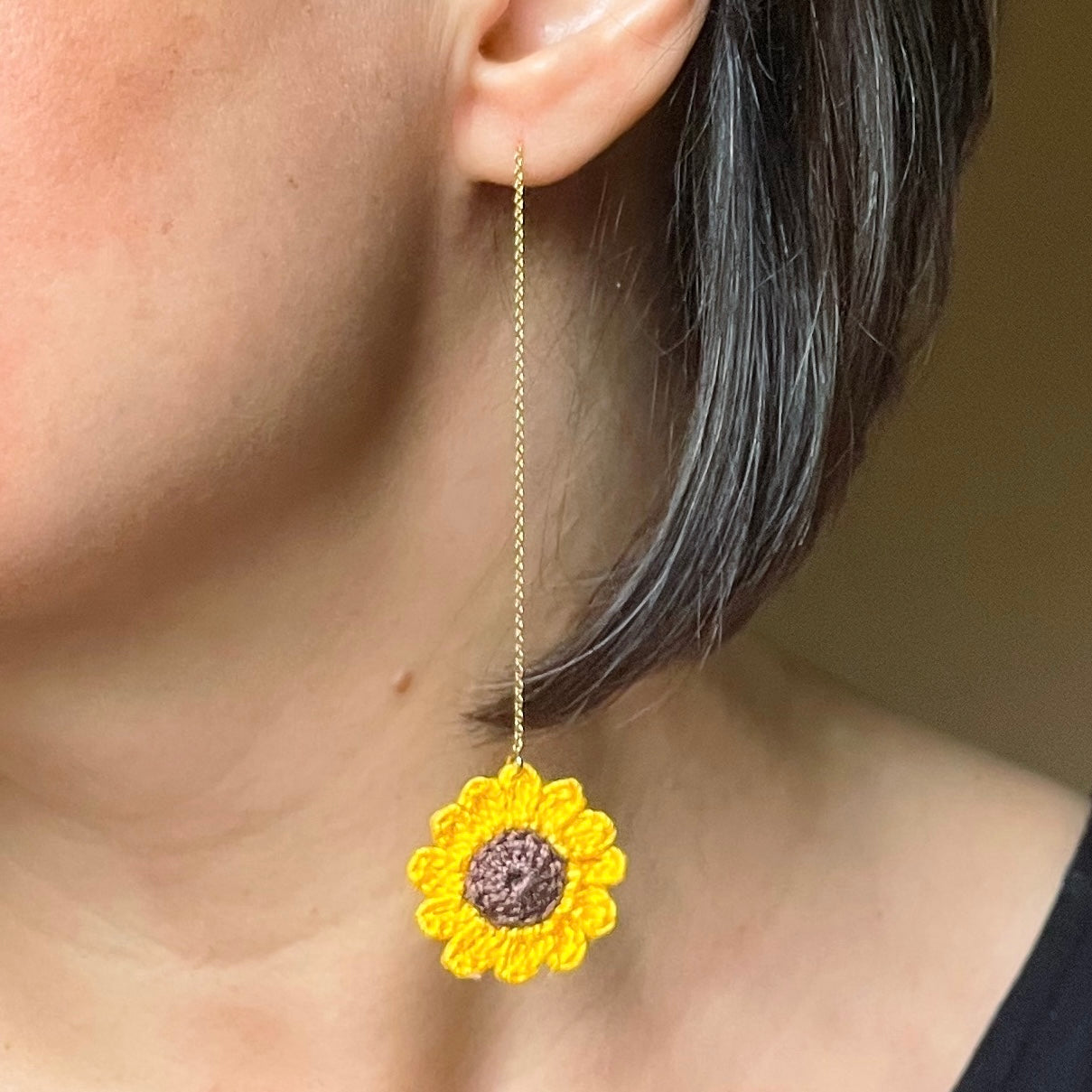 The perfect summer accessory for days spent out and about, the Sunflower Threader Earrings are super versatile, comfortable, and will dress up even the simplest of outfits. No backs or ear wires needed, just thread 'em in and you're good to go. Vary the length by adjusting the chains.